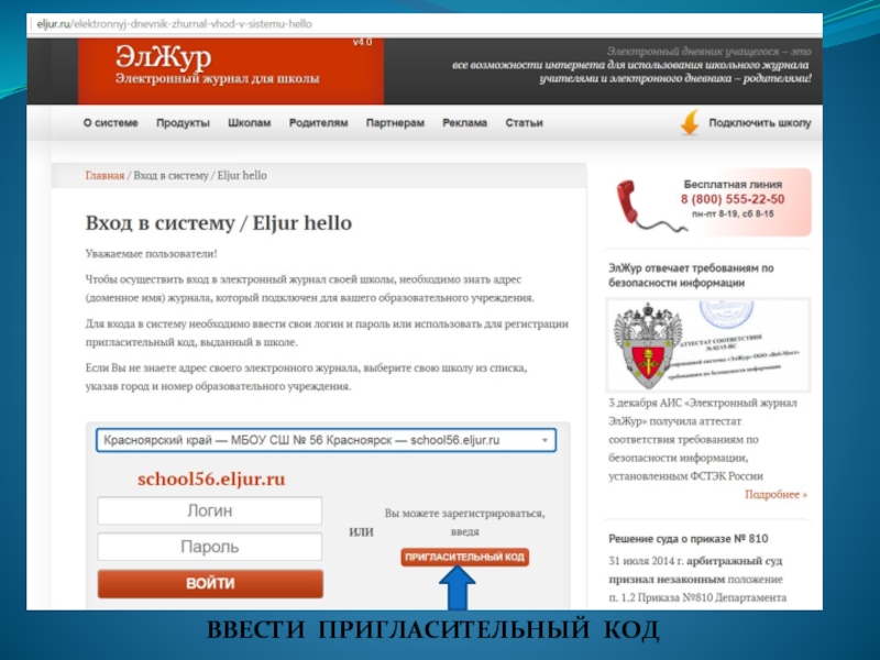 ВВЕСТИ ПРИГЛАСИТЕЛЬНЫЙ КОД