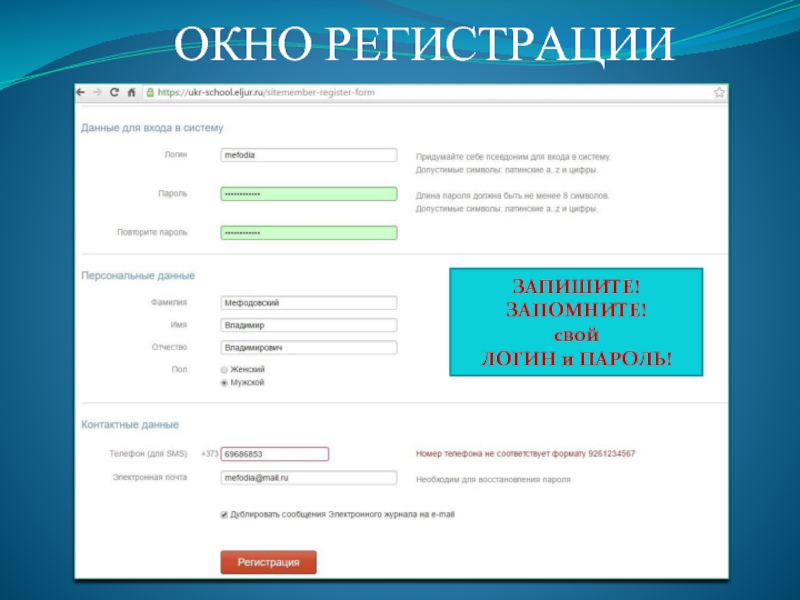 Слайд 7ОКНО РЕГИСТРАЦИИ