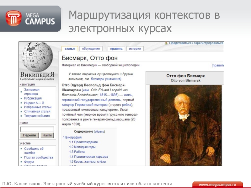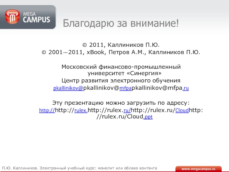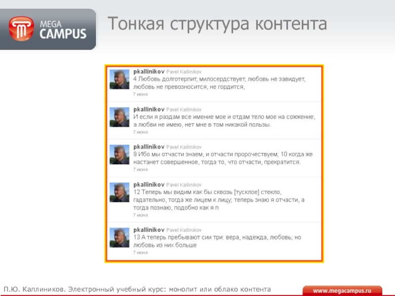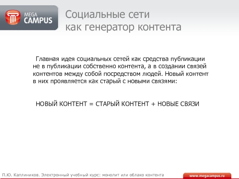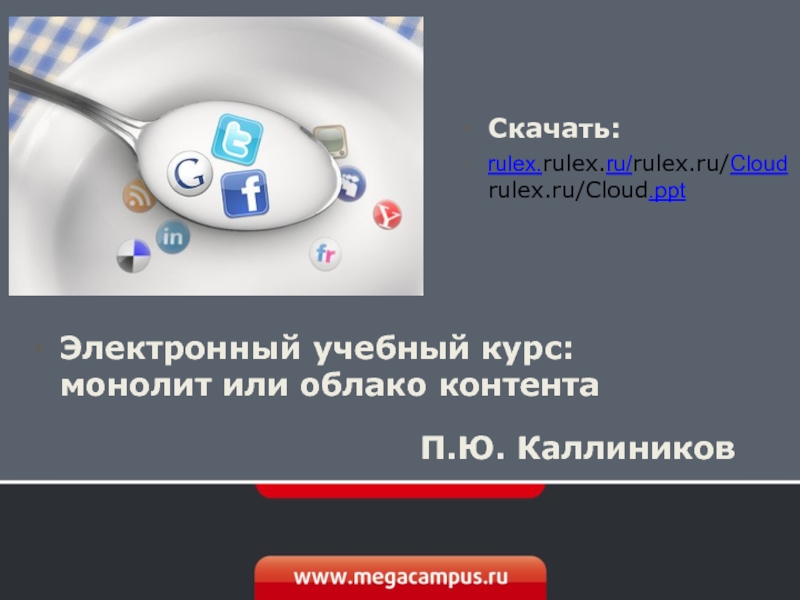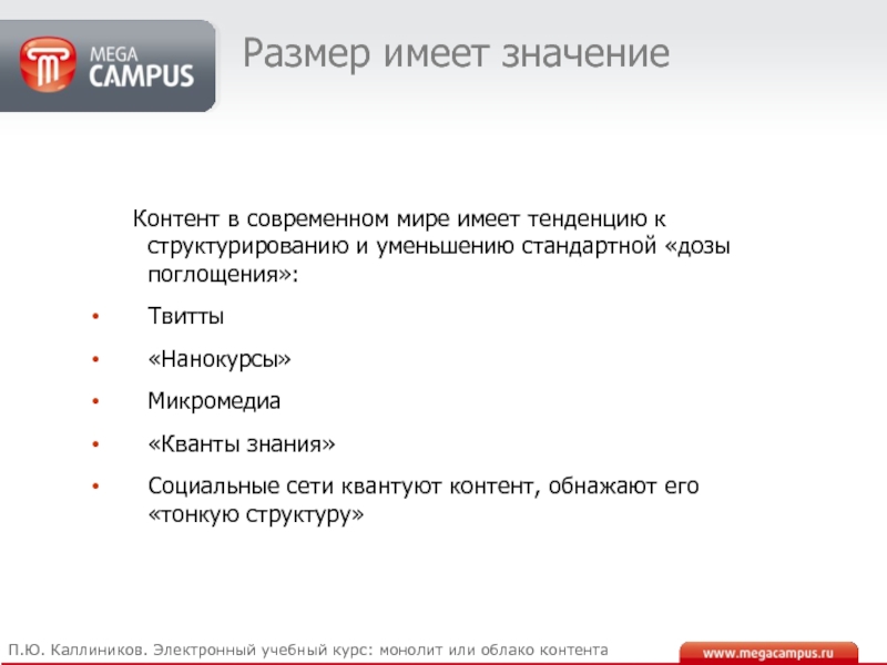 П.Ю. Каллиников. Электронный учебный курс: монолит или облако контента