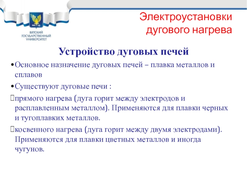косвенного нагрева (дуга горит между двумя электродами). Применяются для плавки цветных металлов и иногда чугунов.