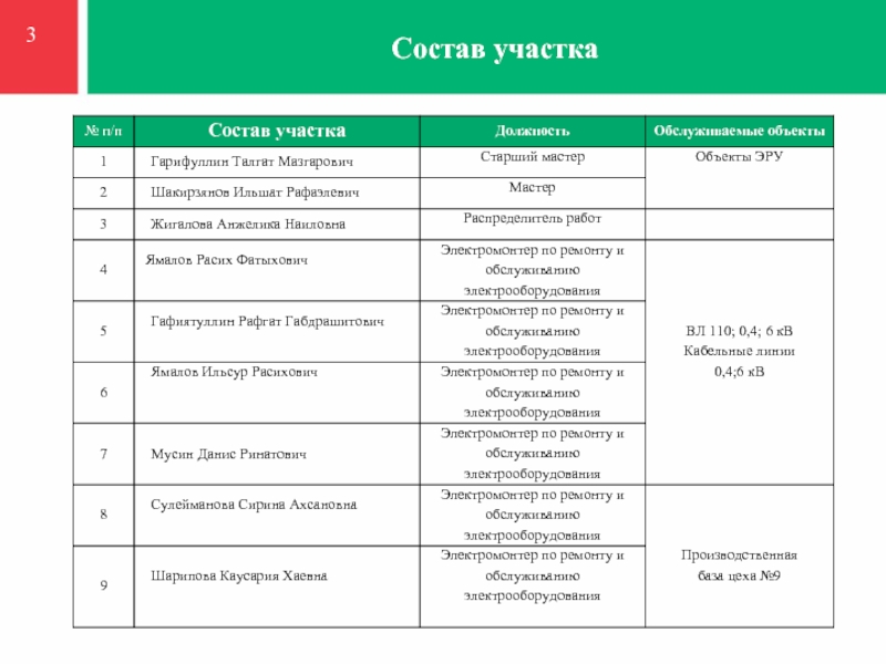 Основной задачей ЭРУ является поддержание работоспособности электрооборудования обслуживаемых объектов; ВЛ 110, 6 и 0,4 кВ ; кабельных линий 6 и 0,4 кВ ; ремонт электродвигателей различной мощности, перемотка их обмоток , восстановление (перемотка) электромагнитных катушек.