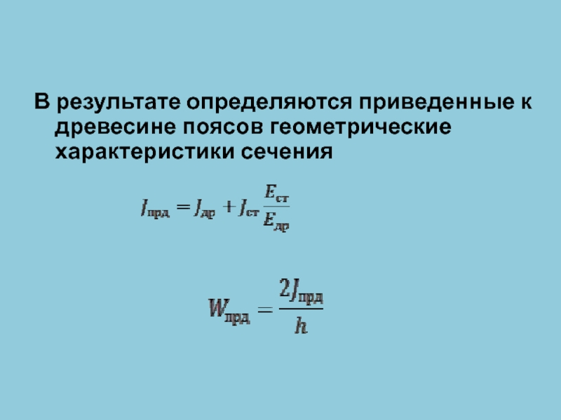 Слайд 50В результате определяются приведенные к древесине поясов геометрические характеристики сечения