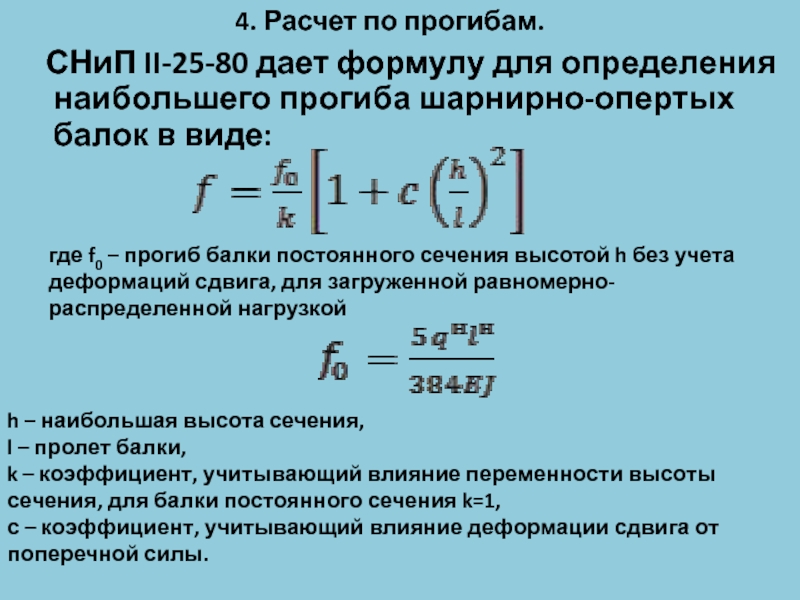 Расчет таких балок производится по общим принципам строительной механики с учетом формы и высоты сечения (коэффициентов mδ и mф).