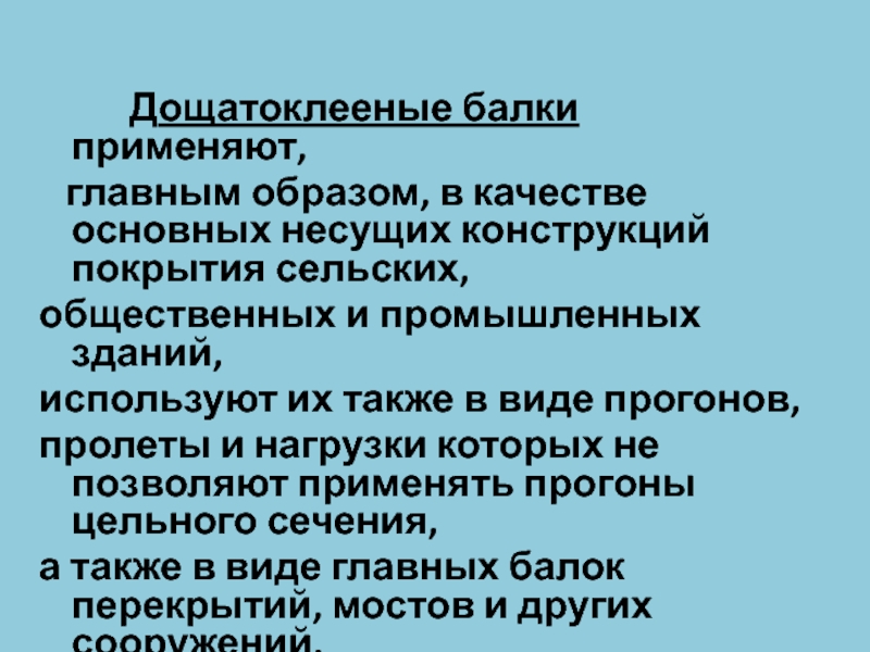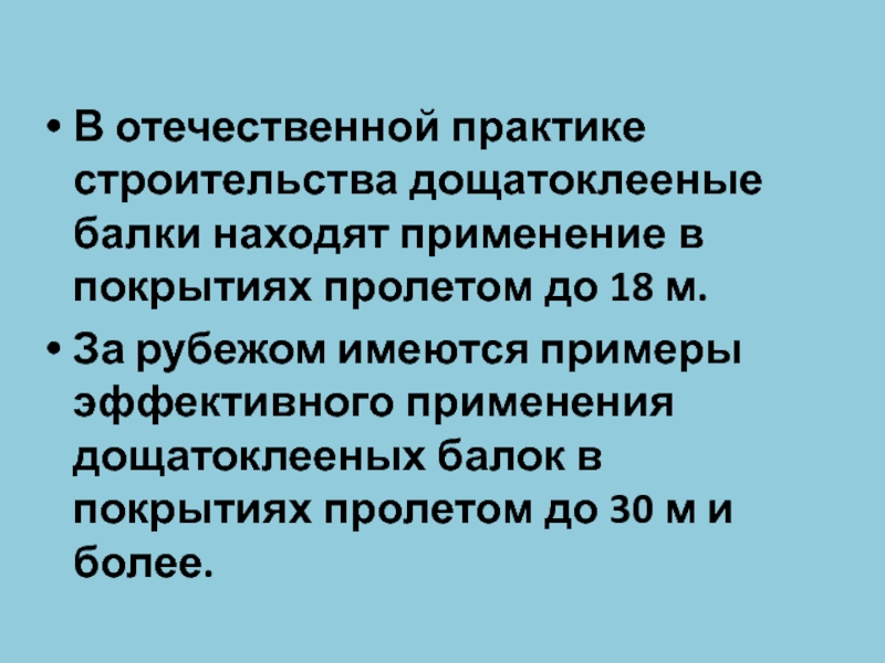 Слайд 5В отечественной практике строительства дощатоклееные балки находят применение в покрытиях пролетом