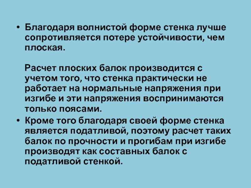 Слайд 64Благодаря волнистой форме стенка лучше сопротивляется потере устойчивости, чем плоская.