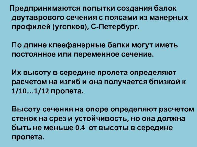 Слайд 424) Цельнофанерная клееная балка двутаврового сечения