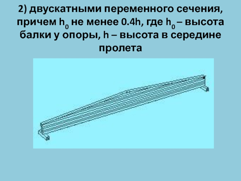 Слайд 72) двускатными переменного сечения, причем h0 не менее 0.4h, где h0
