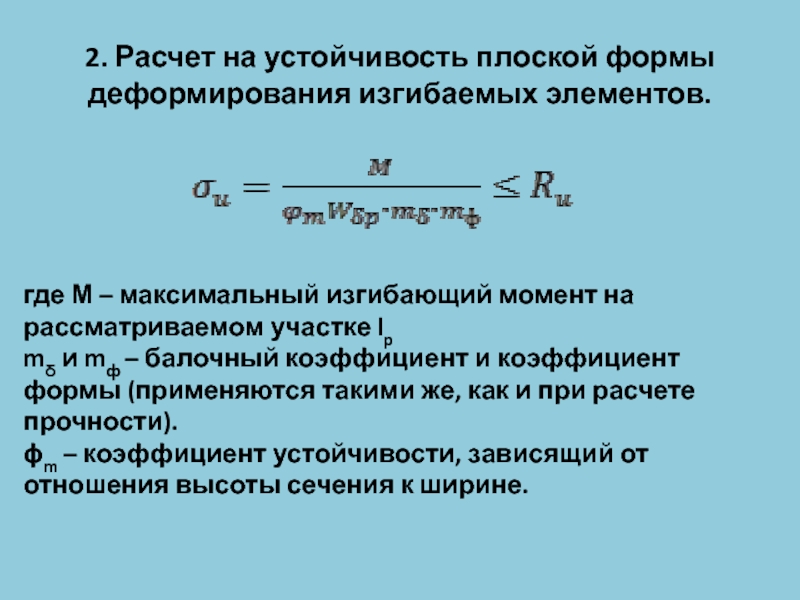 Слайд 282. Расчет на устойчивость плоской формы деформирования изгибаемых элементов.