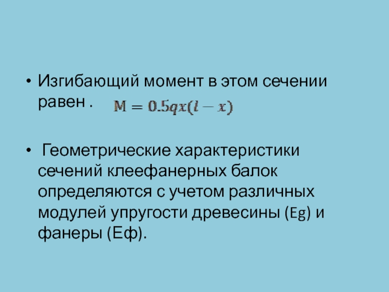 в поясах из древесины и фанерной стенке балки производится на действие максимального изгибающего момента по формулам: