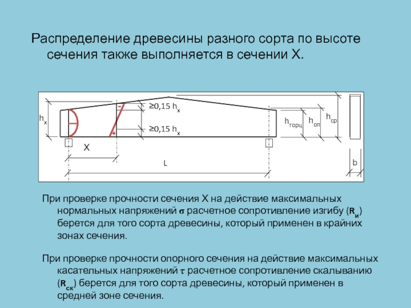 Слайд 26Распределение древесины разного сорта по высоте сечения также выполняется в сечении