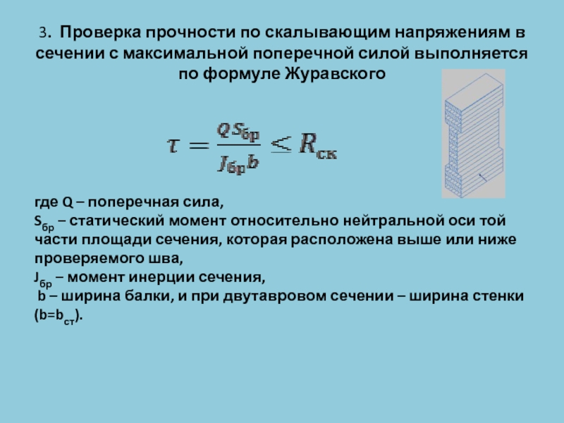 Слайд 293. Проверка прочности по скалывающим напряжениям в сечении с максимальной поперечной