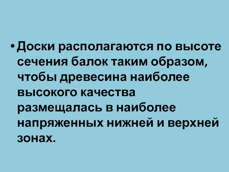 Слайд 14Доски располагаются по высоте сечения балок таким образом, чтобы древесина наиболее