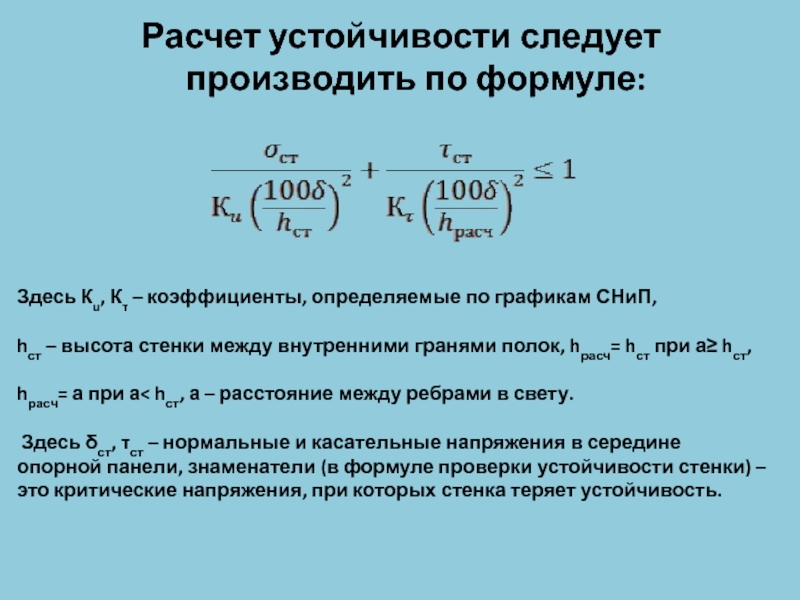 Слайд 59Расчет устойчивости следует производить по формуле: