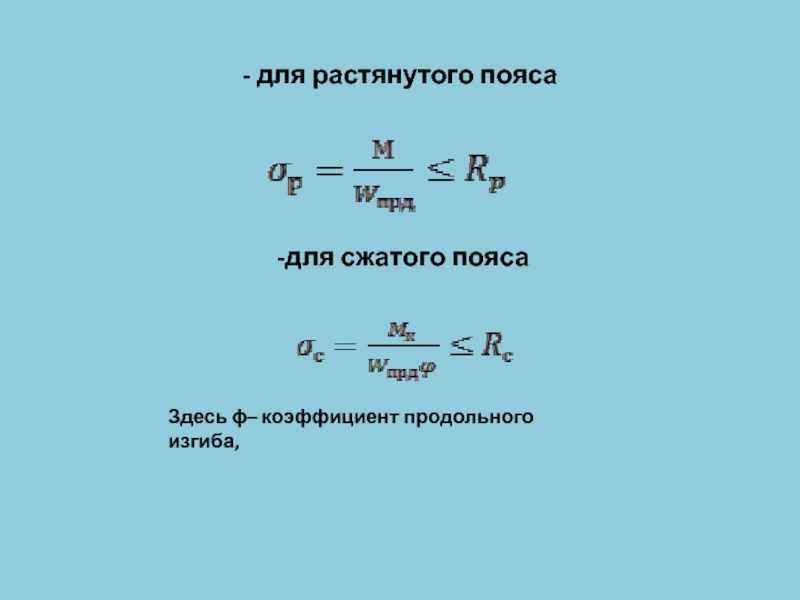 балок производится с учетом того, что стенка практически не работает на нормальные напряжения при изгибе и эти напряжения воспринимаются только поясами.