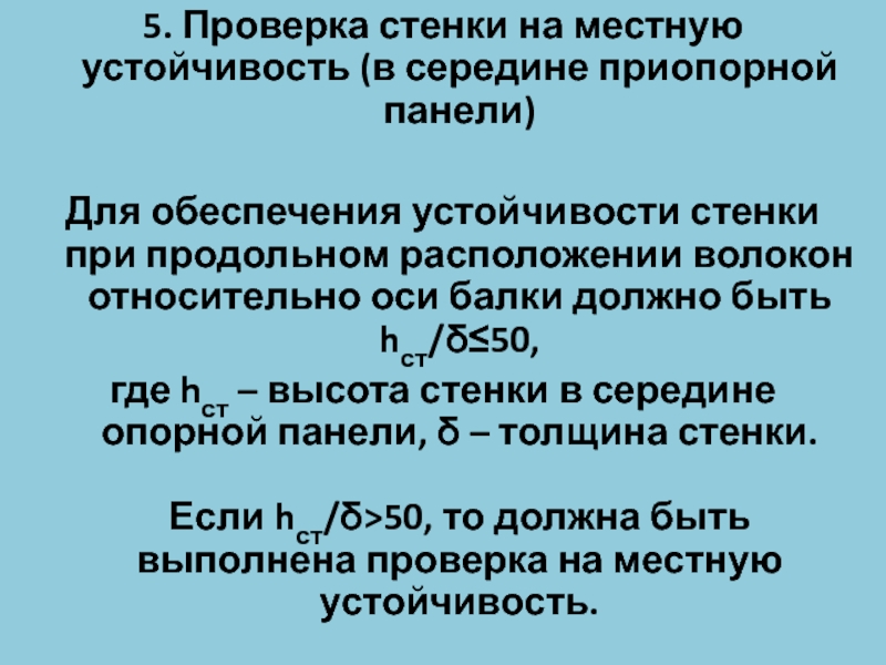 Слайд 585. Проверка стенки на местную устойчивость (в середине приопорной панели)