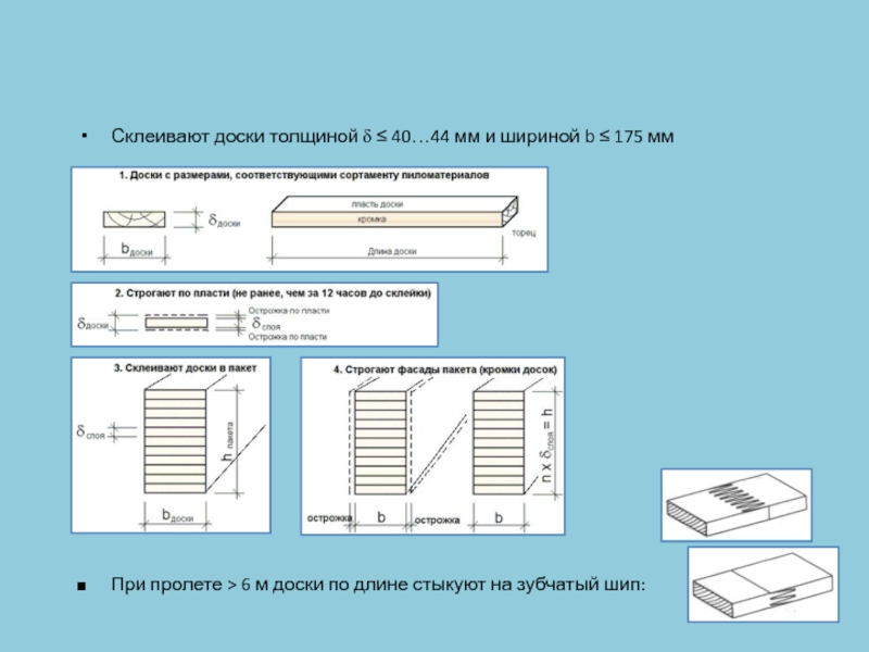 Слайд 16Склеивают доски толщиной δ ≤ 40…44 мм и шириной b ≤