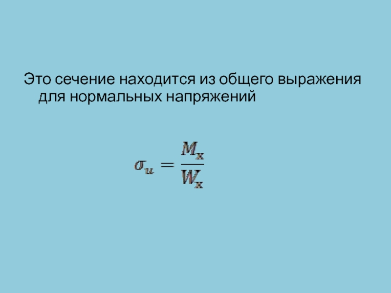 Слайд 21Это сечение находится из общего выражения для нормальных напряжений