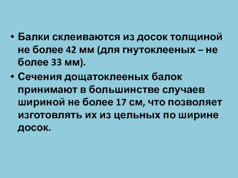 Слайд 10Балки склеиваются из досок толщиной не более 42 мм (для гнутоклееных