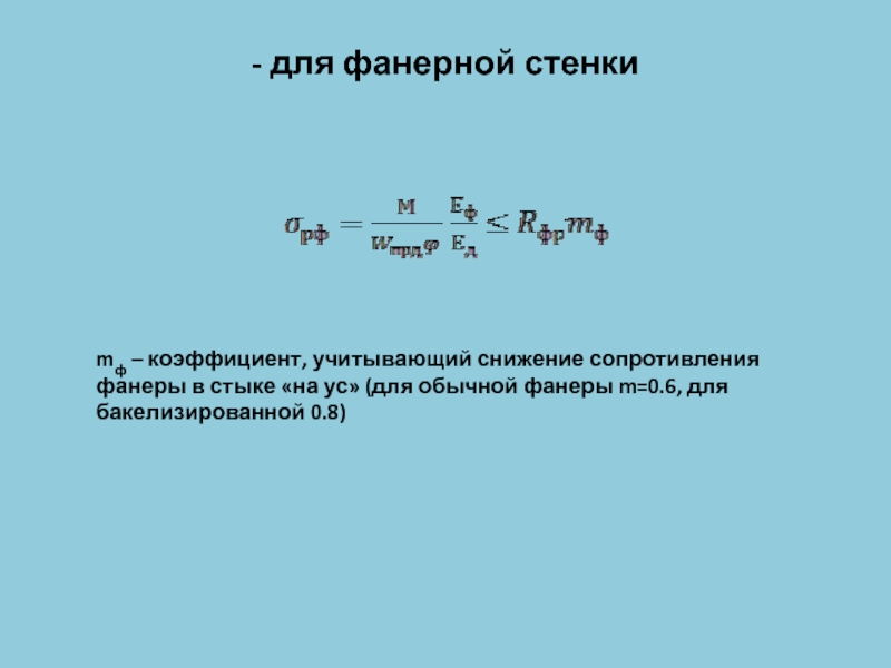mф – коэффициент, учитывающий снижение сопротивления фанеры в