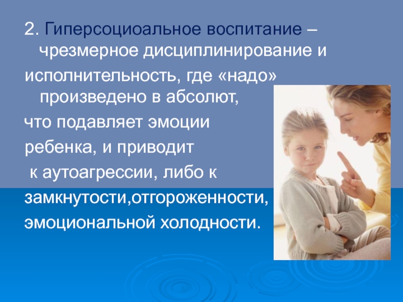 Слайд 202. Гиперсоциоальное воспитание –чрезмерное дисциплинирование и