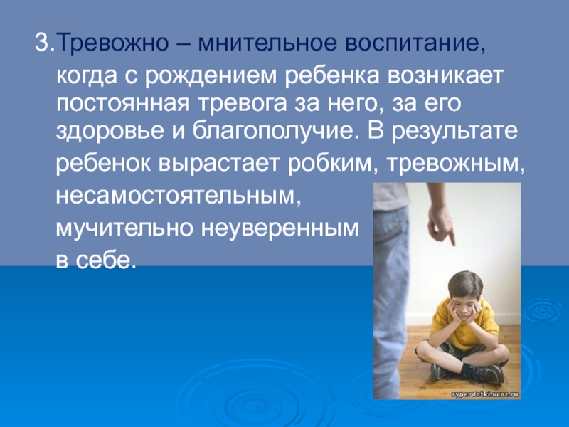 Слайд 213.Тревожно – мнительное воспитание,