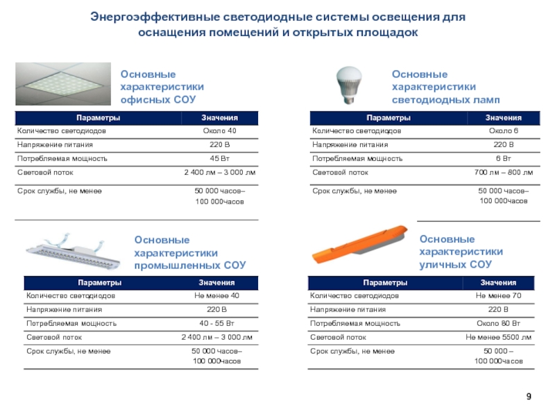 Основные характеристики светодиодных ламп