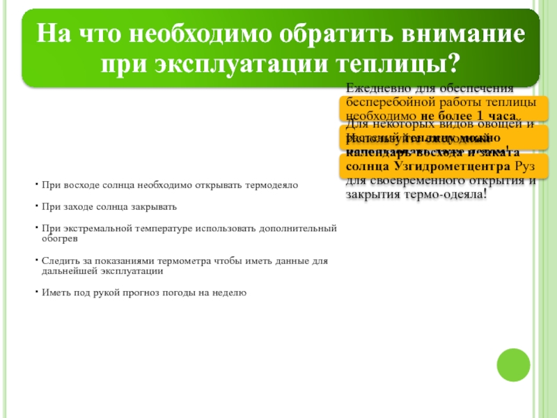 Ежедневно для обеспечения бесперебойной работы теплицы необходимо не более 1 часа рабочего времени 1 человека!