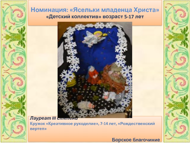 Слайд 43Номинация: «Ясельки младенца Христа»