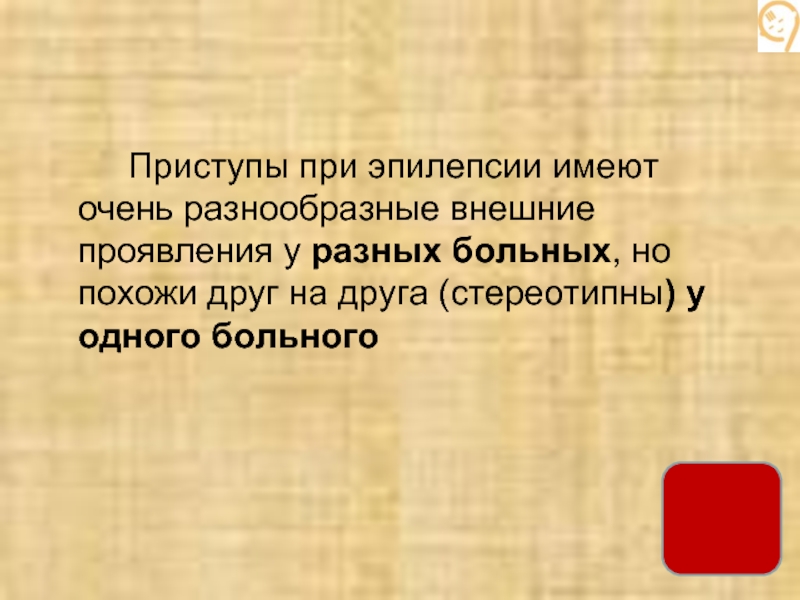 Слайд 28 Приступы при эпилепсии имеют очень разнообразные внешние проявления у разных больных,