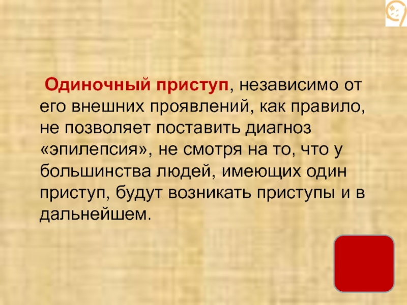 Слайд 24 Одиночный приступ, независимо от его внешних проявлений, как правило, не позволяет