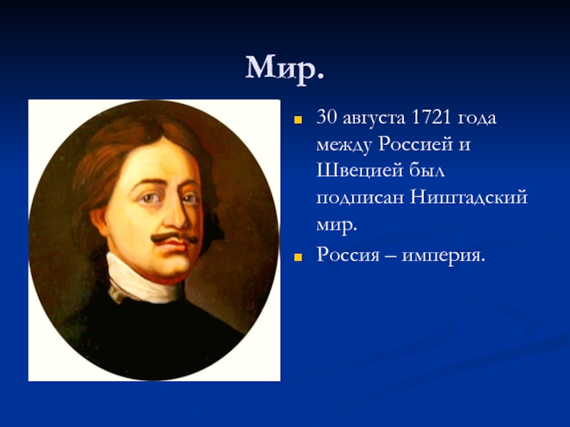30 августа 1721 года между Россией и Швецией был подписан Ништадский