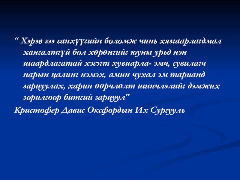 Слайд 19“ Хэрэв зээ санхүүгийн боломж чинь хязгаарлагдмал хангалтгүй бол хөрөнгийг юуны