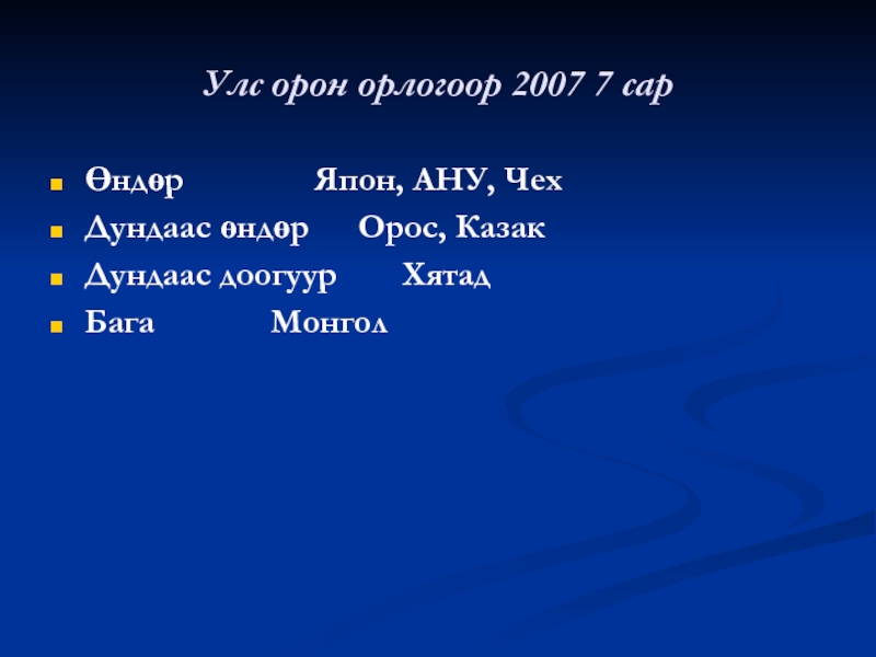 Слайд 12Улс орон орлогоор 2007 7 сар