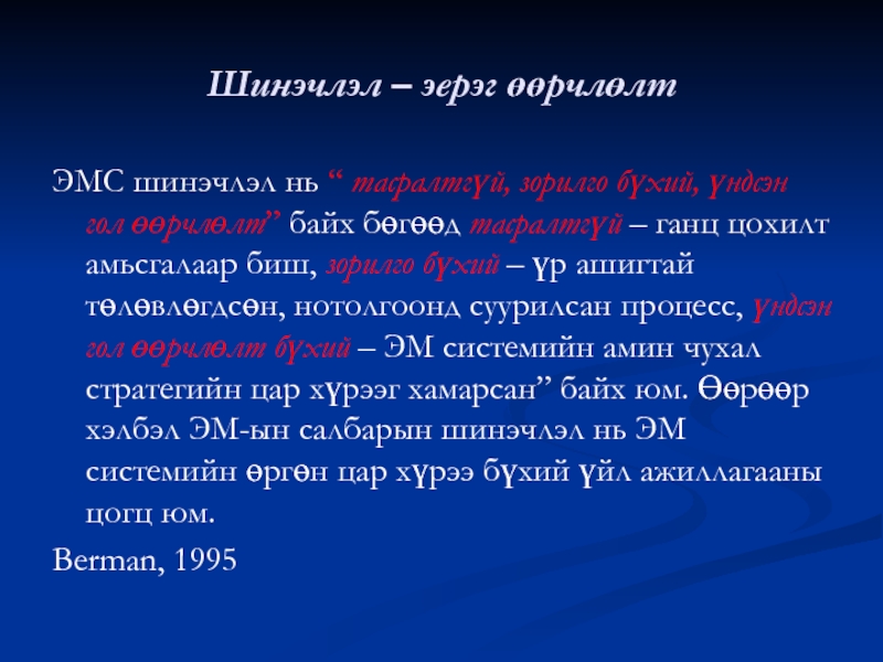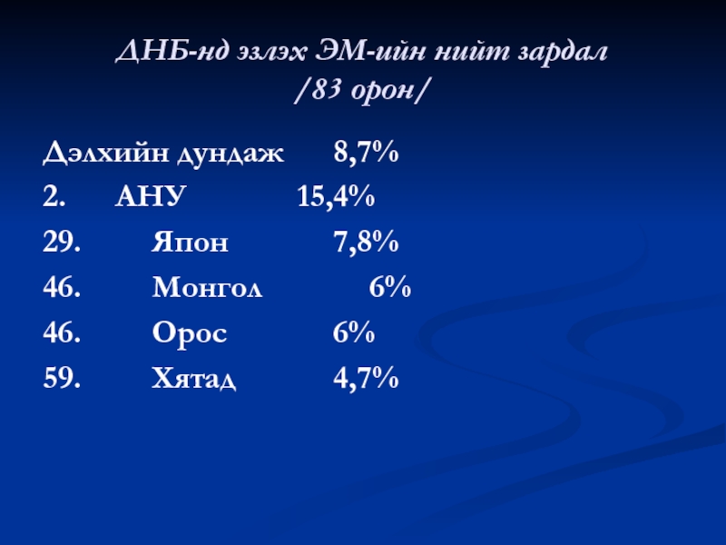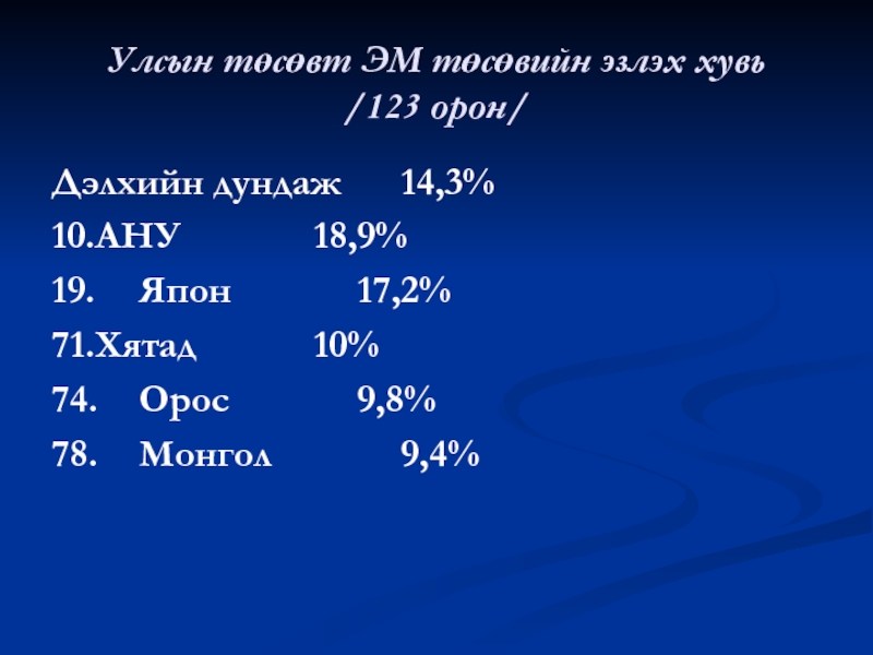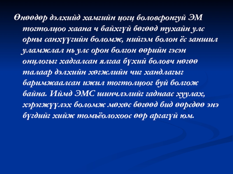 Слайд 20Өнөөдөр дэлхийд хамгийн цогц боловсронгуй ЭМ тогтолцоо хаана ч байхгүй бөгөөд