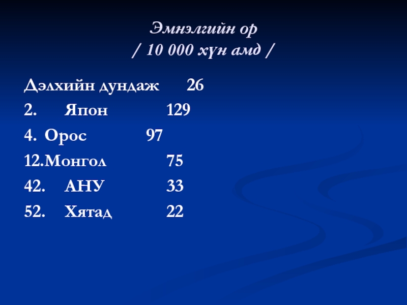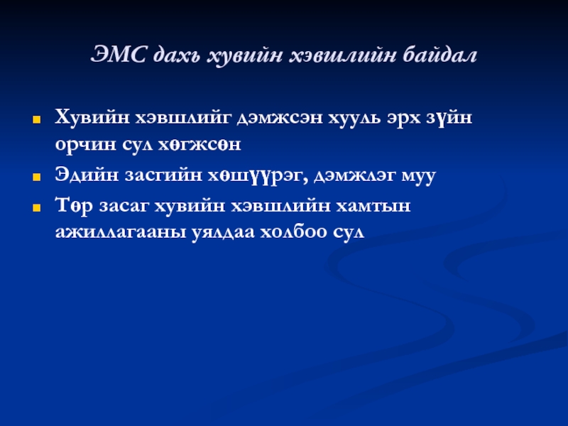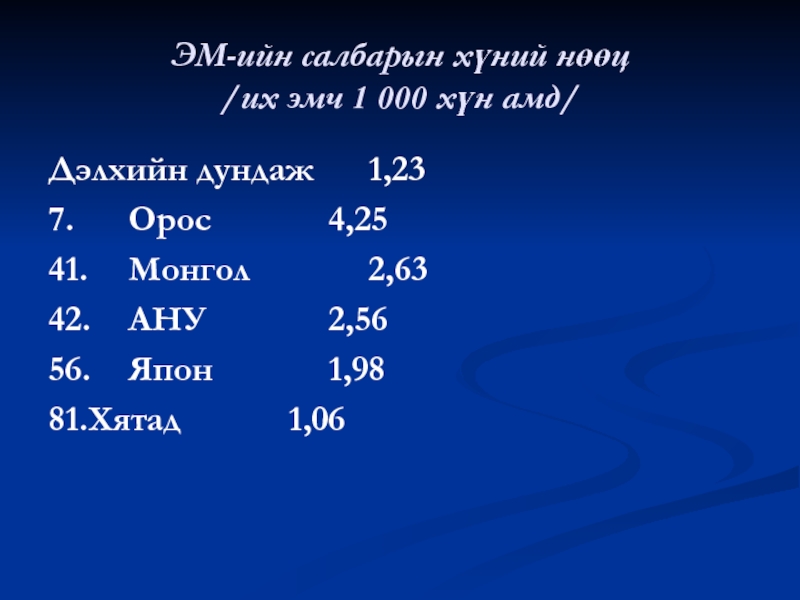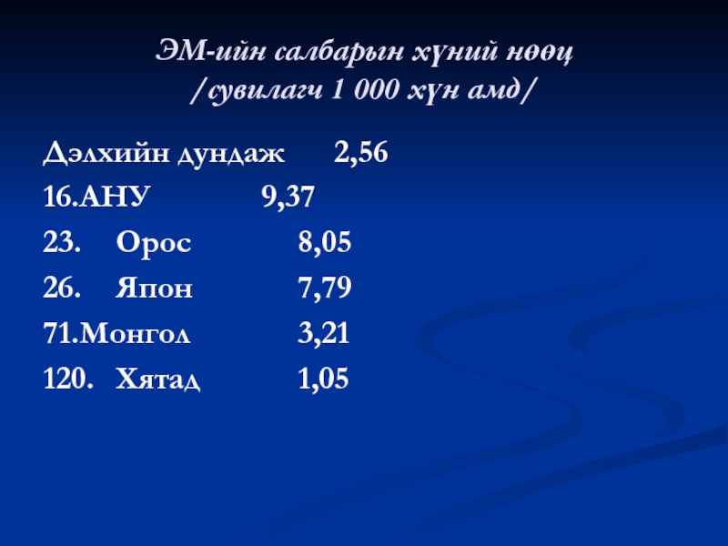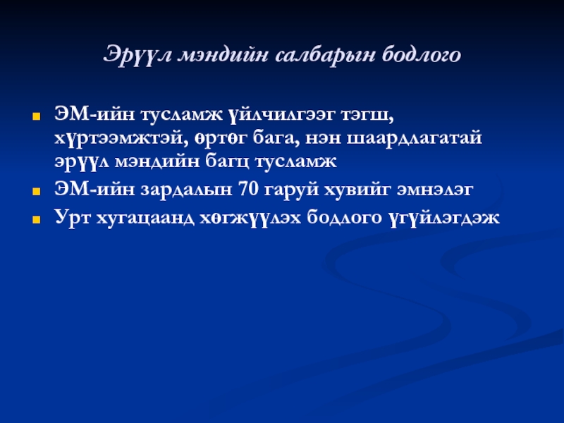 Слайд 1ЭРҮҮЛ МЭНДИЙН САЛБАРЫН ӨНӨӨГИЙН БАЙДАЛ