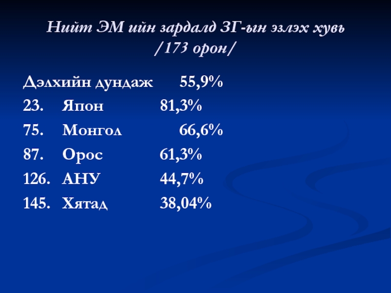 Слайд 7Нийт ЭМ ийн зардалд ЗГ-ын эзлэх хувь