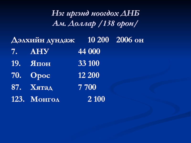 Слайд 3Нэг иргэнд ноогдох ДНБ