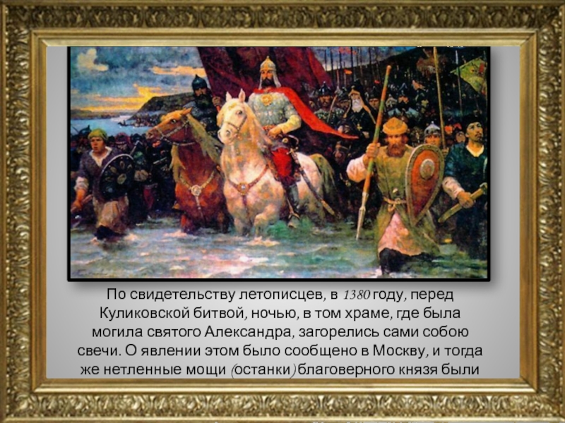 Слайд 29По свидетельству летописцев, в 1380 году, перед Куликовской битвой, ночью, в
