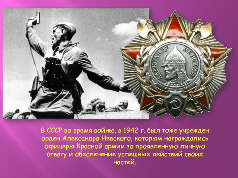 орден Александра Невского, которым награждались офицеры Красной армии за проявленную личную отвагу и обеспечение успешных действий своих частей.