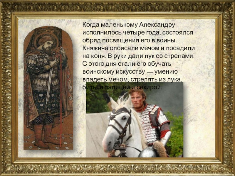 Слайд 11Когда маленькому Александру исполнилось четыре года, состоялся обряд посвящения его в