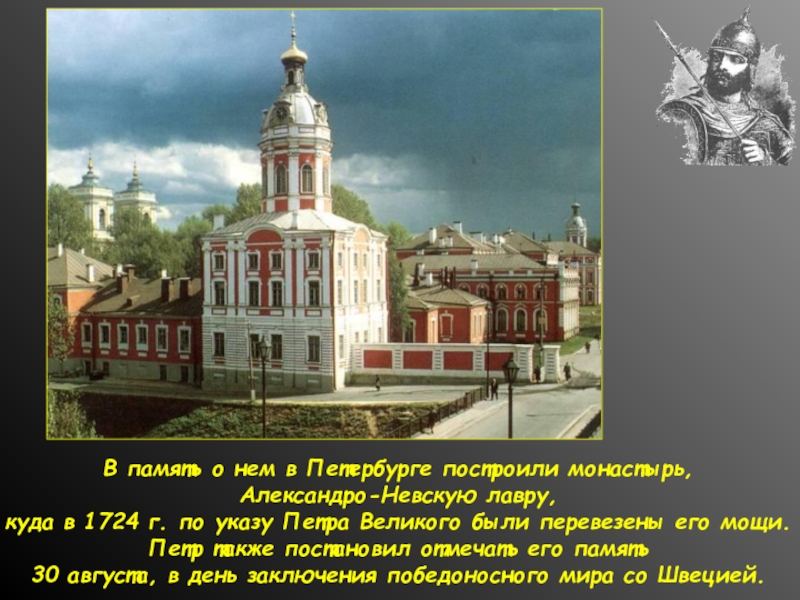 Слайд 33В память о нем в Петербурге построили монастырь,
