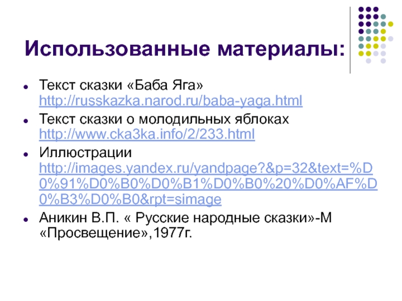 Текст сказки «Баба Яга» http://russkazka.narod.ru/baba-yaga.html