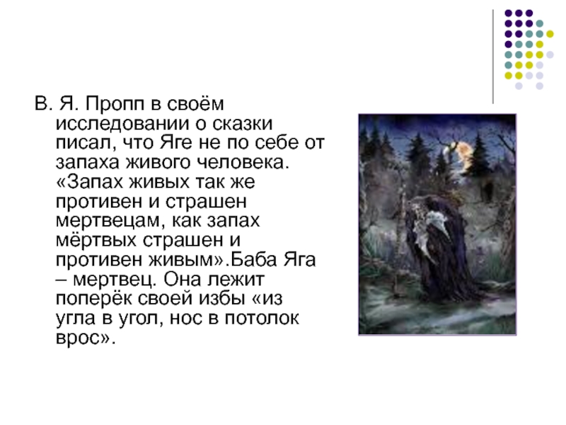 Слайд 4В. Я. Пропп в своём исследовании о сказки писал, что Яге