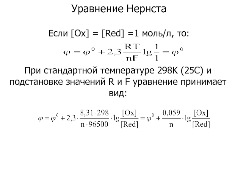 298K (25C) и подстановке значений R и F уравнение принимает вид: