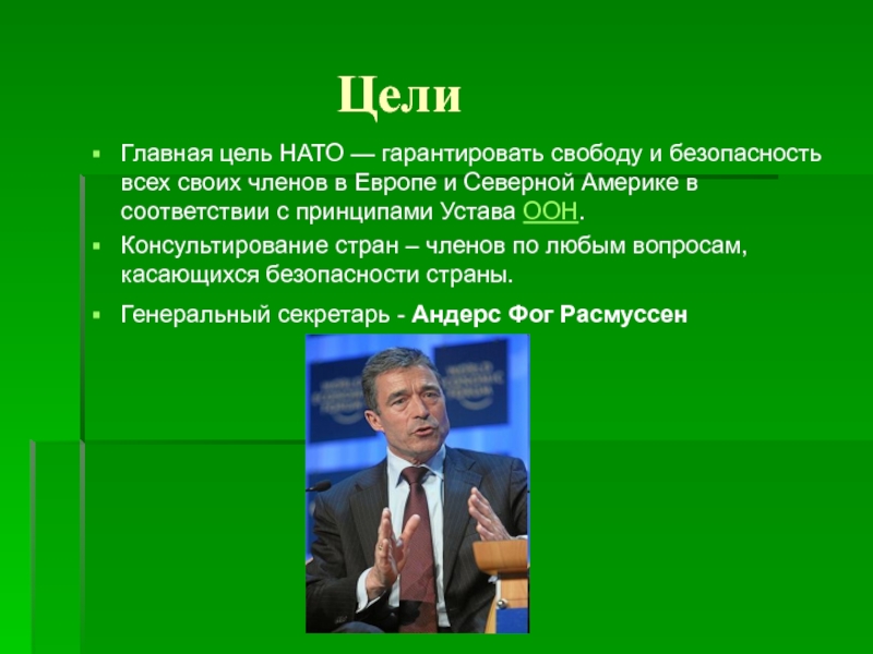 гарантировать свободу и безопасность всех своих членов в Европе и Северной Америке в соответствии с принципами Устава ООН.