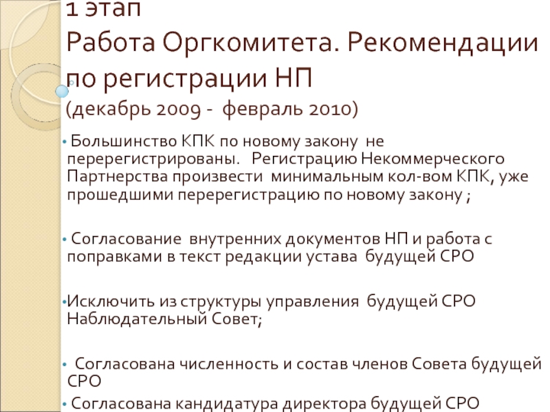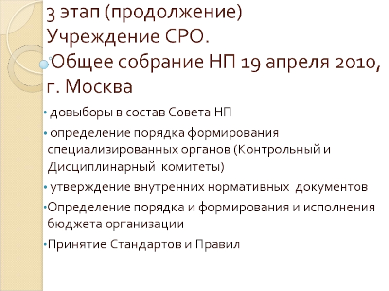 Согласование внутренних документов НП и работа с поправками в текст редакции устава будущей СРО
