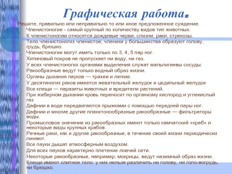 Решите, правильно или неправильно то или иное предложенное суждение.