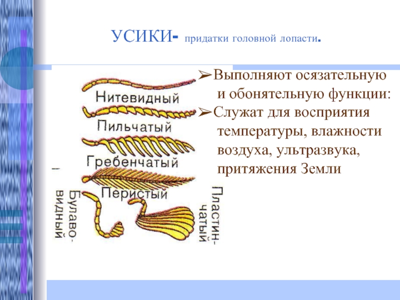Слайд 7УСИКИ- придатки головной лопасти.