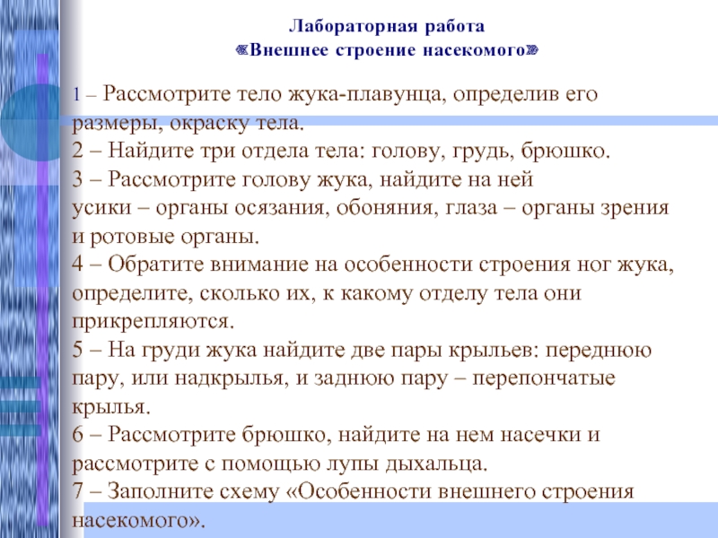 «Внешнее строение насекомого»