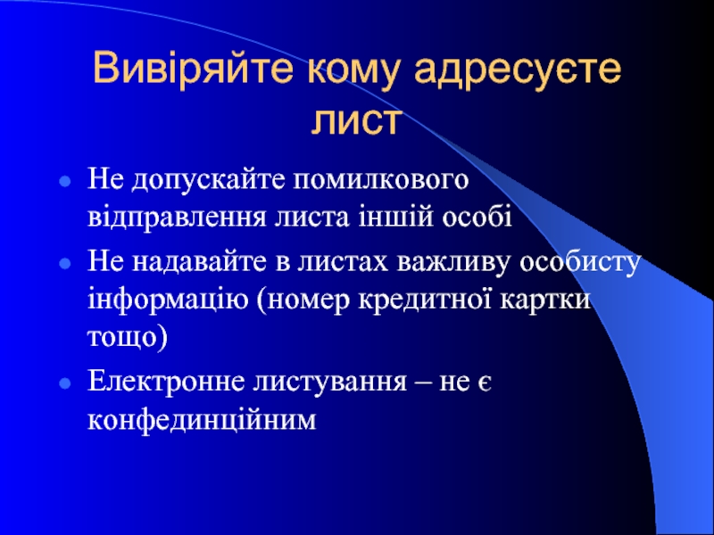 в листах важливу особисту інформацію (номер кредитної картки тощо)